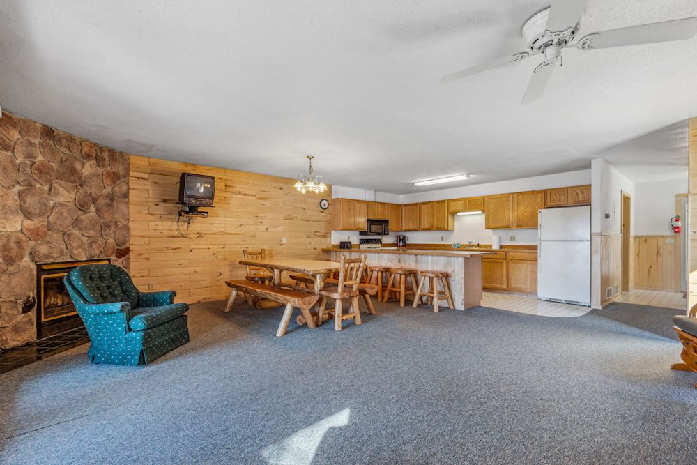 The Pinestone Condo #21 is a deluxe lakeside condo with four bedrooms, a bathroom for each bedroom, fireplace, patio, fully equipped kitchen, Jacuzzi in the master bedroom, Satellite TV, Wi-Fi, and air conditioning.