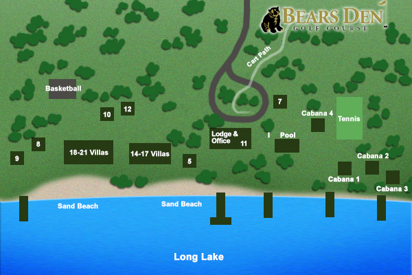 Our map is a basic representation of Timberlane Resort and not to scale. Our accommodations are well spaced for privacy and our grounds are covered with Birch and Pine trees.
